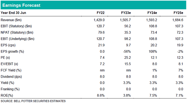 ASB is set to enter FY24 with a record contract book of ~$11b AUD, with recent contracts such as the OPC (~$4.3b), the T-AGOS (~$4.7b) and the likely award of the EMS (~$1.25b) contract, providing a deep pipeline of work for the next decade. These programs were vital to replace the two major programs, the LCS and EPF, which were historically the foundation of Austal’s contract book, with both programs scheduled to deliver their final vessels in FY26.