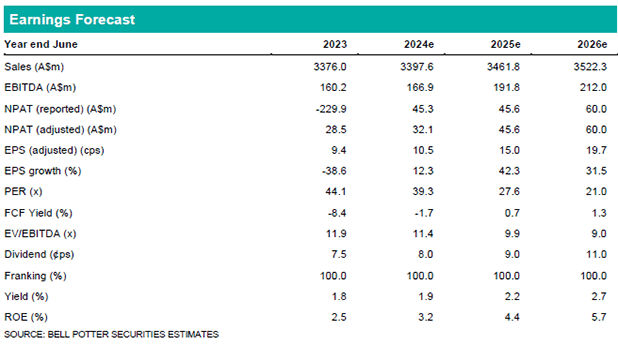 Self help is underappreciated: BGA highlighted at it’s 1H24 results that it remains on track to deliver >$20m in annualised cost savings, with a likely phasing to 2H24e.