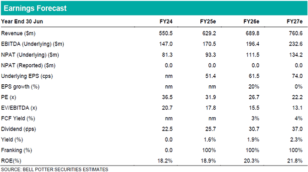 CDA has a proven track record of successfully acquiring and integrating new business into group operations. Based on our forecast FCF growth, current net debt position and an increased debt facility ($200m), we believe the CDA balance sheet is in a healthy position with sufficient capacity to make further acquisitions. The company is not overly leveraged with a forecast Net debt to EBITDA ratio of 0.5 in FY25.