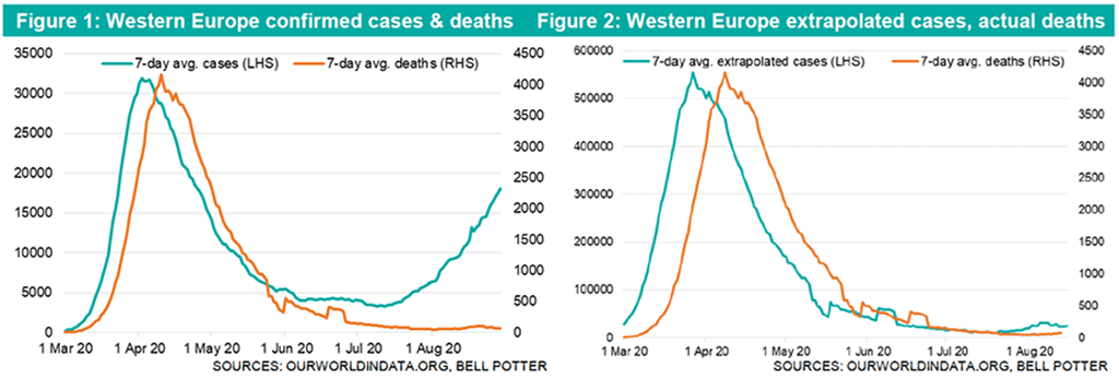 While Western Europe’s 2nd wave is garnering worldwide attention, what is being virtually unacknowledged, is that the number of COVID-19 deaths across the region remain far below prior levels. This suggests that case numbers earlier on in the outbreak were massively undercounted. In order to gain further insight into how large the undercounting may have been, we have conducted an extrapolation based upon the number of deaths recorded. While subject to infection fatality rate (IFR) assumptions, which could be above or below our input, this extrapolation should provide a more accurate picture of case numbers.
