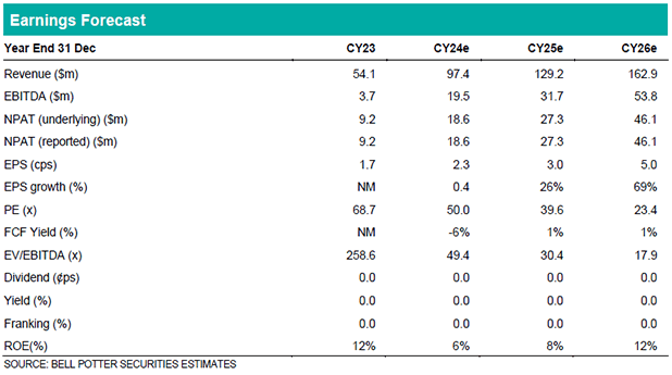 We have made no changes to our revenue forecasts at this stage, whilst we have made minor changes to operating expenses, cash flows and working capital in-line with today’s result. Our EPS changes are -6% and +2% in CY24 and CY25, respectively. We have reassessed our valuation assumptions and determined they are overly conservative considering the well capitalised balance sheet (we made no changes post the recent capital raise) and the recent re-rating of mid-cap defence peers. As such, we have increased the multiples we apply in our EV/EBITDA and PE valuations to 26x and 36x, respectively. The net result is an 8% increase in our PT to $1.35, which is >15% premium to the share price so we retain our buy recommendation.