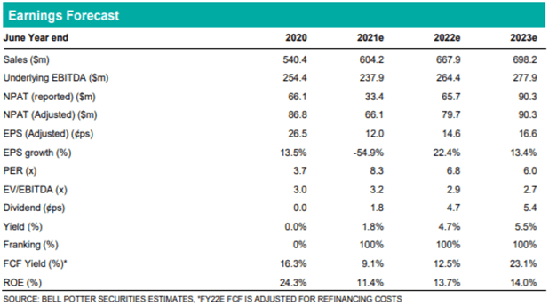 EHL has reiterated its guidance for FY21e Operating EBITDA to be between $235- 238m (BPe $237.9m), although we believe coal prices should see EHL go top of range. Prices of metallurgical and thermal coal have increased by +62.3% and +37.1% respectively since the guidance was first provided on the 23rd April, incentivising increased operating utilisation of the eastern fleet (60% of 1H21 Operating EBITDA).