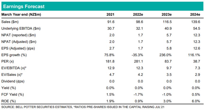 We have reduced our near-term unit growth assumptions accounting for the update, resulting in reductions to our revenue estimates by -2.2%, -3.5% and -2.8% for FY22e, FY23e, and FY24e respectively. We have also updated for the Jul’21 capital raising, although will not amend our numbers until completion occurs in the coming months, with ERD expecting to provide consolidated guidance at a similar time. US unit growth has been disappointing, although ERD is still in the early stages of expanding its platform offering and enterprise sales initiatives in the region, with Coretex expected to accelerate this process in CY22e. We reiterate our Buy recommendation, with our $6.05ps Price Target remaining unchanged until completion of the Coretex acquisition.