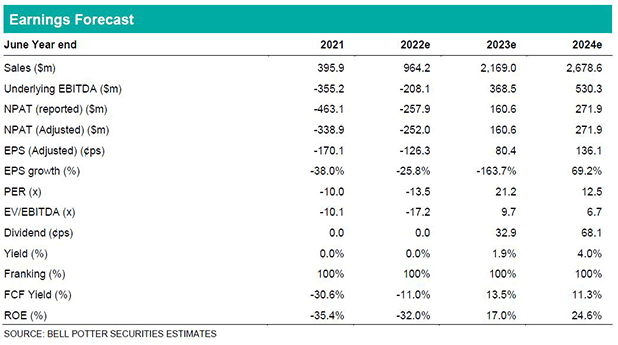 We have had a change in analyst for Flight Centre Travel Group (FLT) which was last published in Aug’21, resulting in a change to our forecasts and valuation. However, we retain our positive view on FLT’s outlook and competitive position as global travel recovers in CY22e, supported by strong organic growth in the Corporate business and a restructured Leisure business that is highly leverage to the return of International outbound Australian travel. While there is still some uncertainty to recovery pathway, we believe sustained reopening’s on milder COVID variants and increased global vaccinations is the base case, with consensus estimates on forward TTV and PBT/TTV margins not onerous in our view. Key highlights of our thesis are: