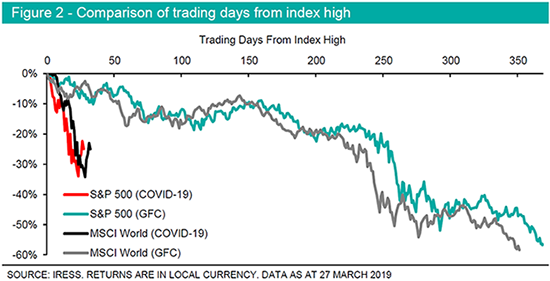 In the space of a month, the MSCI World Index (in USD) had been sold-off by over 30%. The modern world is experiencing an unprecedented systematic shutdown of borders and businesses, suppressing the outlook of future economic global growth.