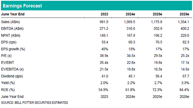 Whilst the exact implications of these changes on IDP are unclear, we expect international demand for both study and work opportunities in Canada to be significantly impacted. Canada is a large market for both IDP’s student placements (SP) (24% of course enrolments) and IELTS exams (BPe ~40%). We have assumed a ~10% reduction in our forecast student placement volumes and ~6% decline in IELTS volumes given our forecasts were already conservative. There are no changes to our 1H24 forecasts. The net result is EPS downgrades of -3% in FY24 and -7% in FY25- 26e. We expect the company will provide commentary on these changes at the 1H24 result on the 14th of February.