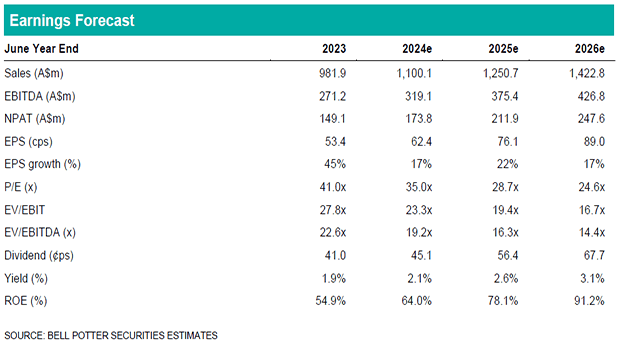 We are more conservative on IDP’s Australian SP outlook with recent data portraying a normalisation of visas issued along with lower grant rates and the possibility of the Australian Govt. introducing policies to cap international student numbers to lower record migration levels. The modest downgrades to our Australia SP assumptions were more than offset by an increase in our multi destination forecasts supported by encouraging northern hemisphere data. The net result was revenue upgrades of ~1- 2% in FY24-25e. We have also reduced our opex forecasts resulting in more material EBITDA upgrades of 10%, 7% and 2% in FY24-26e.