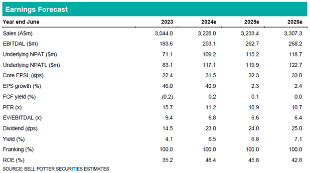 We have incorporated the acquisition of Bostock Bros in our forecasts resulting in NPAT upgrades of +1% in FY25e and +1% in FY26e. Our target price is unchanged at $4.35ps. Our forecasts currently incorporate ~9% YOY compression in feed costs in FY25e and no material change in FY26e. The YTD/Spot implication is a more material downdraft than allowed for, implying a potential profit pool is emerging.