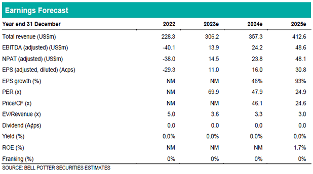 Despite expecting a 2023 result consistent with the guidance we still see the result as a potential catalyst for the share price given the anticipated continued strong growth in paying circles (we forecast q-o-q growth of 82k to 1.83m) and also the provision of initial 2024 guidance. We forecast 2024 revenue and adjusted EBITDA of US$357m and US$24.2m which equate to growth of 17% and 74% respectively. Guidance consistent with our forecasts would be well received in our view and would also