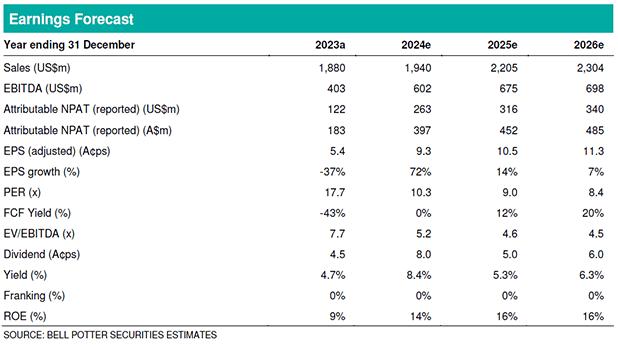 EPS changes in this report are: CY24: +72%; CY25: +7%; and CY26: +1%. Our NPV based valuation lifts 3% to $1.54/sh on lower costs, minor production increases and a lower AUD:USD exchange rate. NIC is one of the world’s largest listed nickel producers and one of few that offers diversified exposure across a range of nickel products and markets. It continues to trade on undemanding valuation multiples, offers a supportive (unfranked) dividend and has demonstrated its ability to make money through the nickel price cycle. Retain Buy.