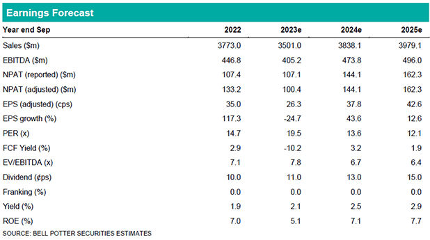 There are no changes to our forecasts in this report. We had previously downgraded our NUF forecasts (see: ”Peer pressure” (10/08/23)) to reflect softer sector wide 3Q23 sales trends. Our $7.00ps target price is also unchanged in this report.