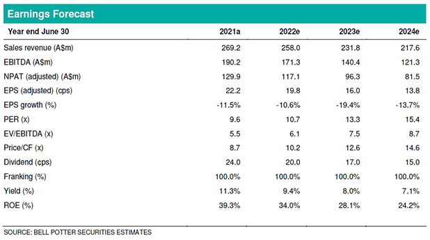 Should there be a resolution or peace agreement in Ukraine, we would hope to see markets stabilise and recover back towards previous levels, which could trigger a corresponding rebound to our forecasts and valuation. With markets remaining fluid, we would look for more certainty before revisiting the shares. With this update our earnings forecasts reduce by 3.1% for FY22, 9.9% for FY23 and 11.1 for FY24.