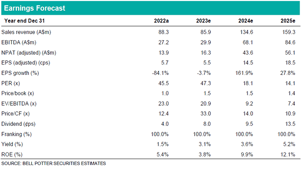 The company released a Q2 update showing June FUM of $5.8bn, rising from $5.5bn at end of March. This was well ahead of our expectation of $5.3bn, which was based on investment returns to the end of May. Within this FUM, net flows were $0.2bn, driven by flows into the Regal Private Credit Opportunities fund and the Attunga Capital Power and Enviro Strategy, which were not in our forecasts. Net inflows for the 12 months to June 2023 were $1.1bn and ahead of the company’s target of $1.0bn.