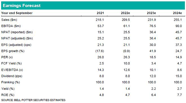 We have raised our cost estimates, while leaving our price estimate unchanged. Implicitly our forecasts assume a recovery in almond pricing as the Californian crop develops and logistics issues are resolved. Our NPAT forecasts fall -10% in FY22e, -10% in FY23e and -7% in FY24e. Our target price is reduced to $6.85ps (prev. $7.10ps) following these changes