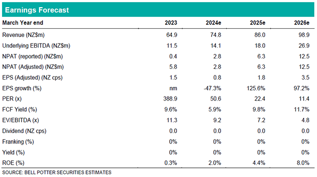 TSK reported a 2Q24 update outlining continued strong momentum regarding client wins, deployments and cash flows. These included: (1) expansion into the Taiwan market via the Plexure division, a significant market for McDonalds in Asia; (2) implementation of its solution into Retail Food Group’s (RFG, Buy rated) Crust business via the TASK division following deployments in Q1; and (3) further contract wins across North America and Australia. TSK generated NZ$12m in operating cash flows for the quarter (with the benefit of upfront annual payments within Plexure), following a NZ$5.9m cash outflow in Q1, to end the period with NZ$31m.