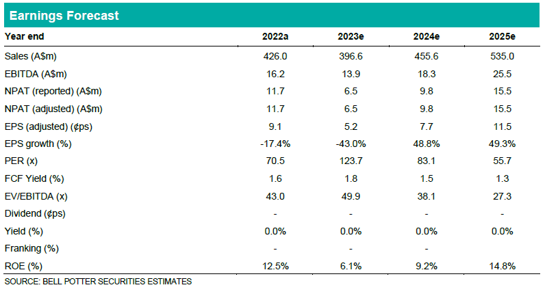 While our FY23e estimates remain unchanged, we make marginal changes to our FY24/25e revenue forecasts to incorporate the current pace in TPW’s web traffic for the month of July (to-date). We remain cautious on the short term outlook and expect further easing in furniture & homewares category spend, however we note TPW’s outperformance to the industry and somewhat stronger start to FY24 which has driven our 1H24 revenue uplift. Our EBITDA margin assumptions remain the same (4.0% and 4.8% for FY24/FY25e) given the company’s focus on returning to high growth and we await guidance at the August FY result. We believe the company will be able to grow revenue in excess of $1b over the next 5 years with higher margins than pre-COVID.