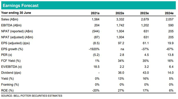 Record thermal coal prices over recent quarters will support WHC’s rapid de-gearing and ultimately a significant cash position and reinstatement of shareholder returns. Operational risks at Narrabri remain, however, should abate over 2022 as mining transitions to shallower panels in FY23. WHC is cheap on most valuation metrics, supporting our upgrade to a Buy recommendation. The caveats to our position are the potential for thermal coal price strength to unwind over the coming quarters and that thermal coal is increasingly excluded from fund managers’ investment mandates.